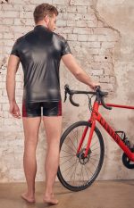 Black shirt from NEK made out of trendy matte look material with red inserts over the shoulders. There is a small stand-up collar and a zip at the front. Wonderfully stretchy pants that are extremely comfortable to wear.