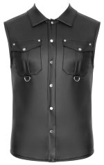 The sleeveless shirt from NEK is in a skin-tight design and it has press studs all the way down the front. It is made out of trendy black matte look material. Slightly flexible for a perfect and comfortable fit. The two chest pockets have D-rings.
