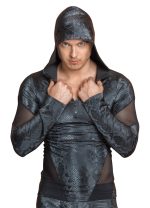 The trendy long sleeve shirt from NEK is made out of shimmering, shiny matte material. The shirt also has a snake skin pattern on it and black powernet inserts. It is very stylish because it has a hood and a small zip at the front. It is wonderfully stretchy which means that it is tight-fitting but also very comfortable to wear.