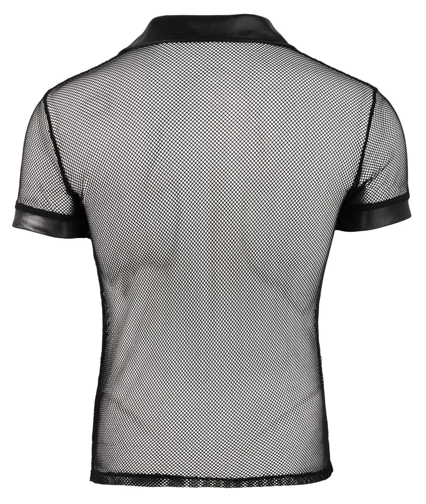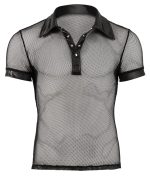 Masculine polo shirt with press studs that stop at the chest. The shirt is made out of a seductive mixture of net and wet look and is sure to grab everyone’s attention.