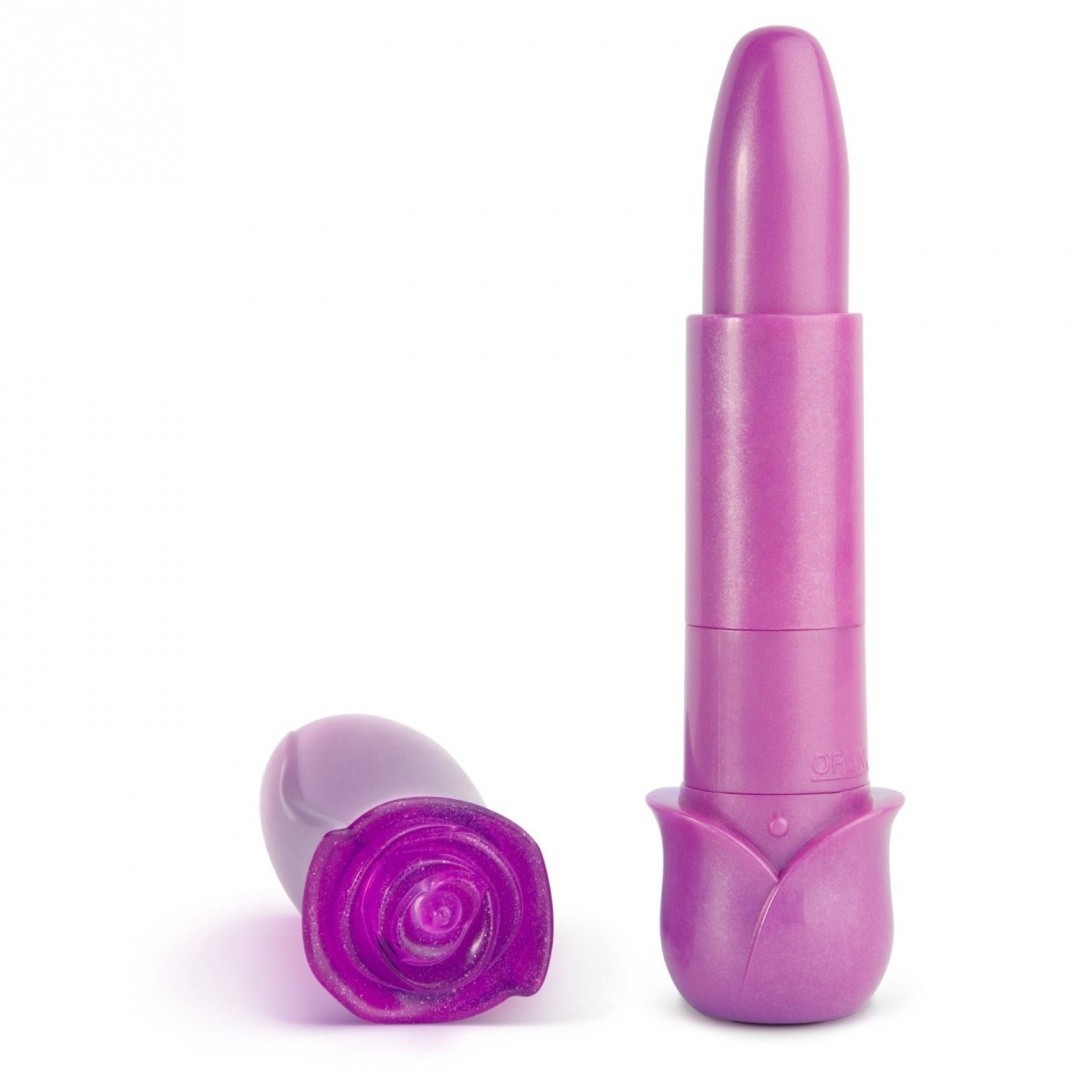 Home Vibratori Vibratori Design MINI VIBRATORE A FORMA DI ROSSETTO CON ROSA BLOOMING ROSE” VIOLA”