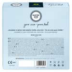 Transparent, extremely thin Mister Size condoms (49 mm) made out of natural rubber latex. The condoms are covered in lubricant and are teat-ended. Vegan.