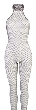 Exciting black fishnet suit with lace collar and open crotch for spontaneous sex action. Smooth and slim-fitting top quality. 88% polyamide, 12% spandex.