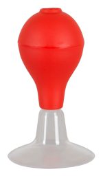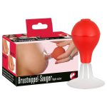 Steep nipples that raise demandingly – this view drives every man mad… Put the sucker on the nipple and squeeze the ball: It feels as if kneading fingers or a sucking mouth stimulates the sensitive nipples and they erect. Red/transparent. Ø of suction cups 5.5 cm. Material: PVC, ABS.