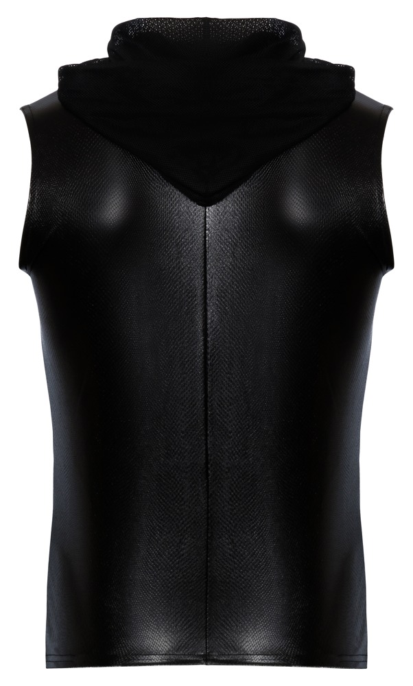Short, sleeveless shirt Alpha from Noir in a shimmering snakeskin look. Fantastically stretchy for a close fit and high wearing comfort. Stylish with a hood made of delicate, soft powernet with a drawstring. Full-length 2-way zip at the front.