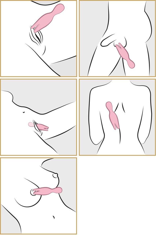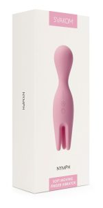 Silky-smooth lay-on vibrator with vibrating and circulating pleasure fingers that provide an intense clitoral stimulation. The rounded vibrator head can be used for sensual massages as well or to please the inner G-spot. The Nymph is pleasantly flexible and waterproof. 3 rotation speeds in the pleasure fingers and 5 vibration modes (each with 5 speeds) in the vibrator’s head guarantee diversified fun. It can be controlled easily at the push of a button and can be recharged with the included USB cable. Includes a storage bag.