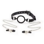 - Gag with chains and nipple clamps