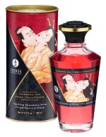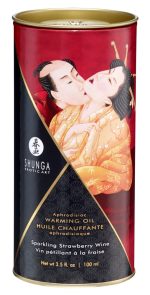 Luxurious Aphrodisiac Warming Oil Strawberry Wine from Shunga with a delicious strawberry aroma that awakens all the senses during an intimate massage! It also has a tingling warmth effect that is subtly intensified by breathing on it. Natural ingredients nourish the skin and the exquisite food-grade aroma invites you to kiss it. A treat for body and soul – and the perfect gift in the elegant glass flask in a beautiful packaging cylinder.