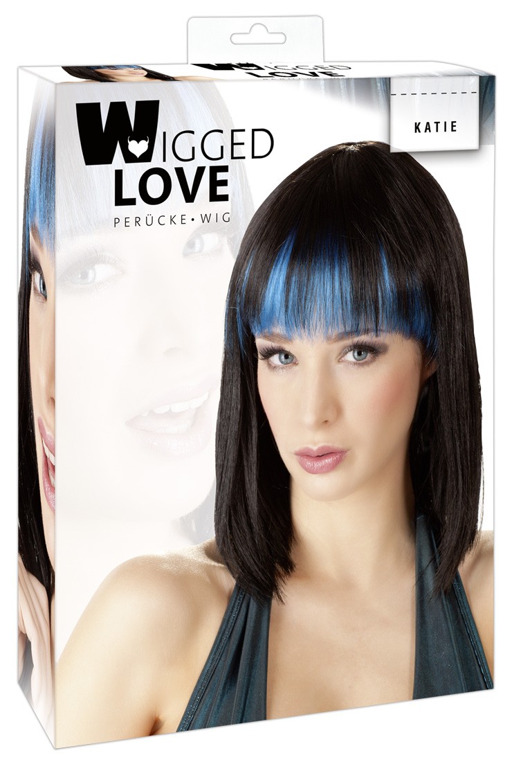 PARRUCA NERA TAGLIO LISCO CON FRANGE BLU KATIE””