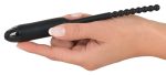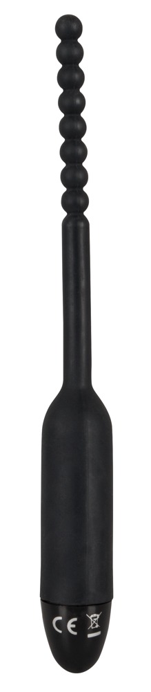 Black vibrating dilator with 7 vibration modes at the touch of a button. Complete length approx. 19 cm, wand length 10.5 cm, Ø approx. 8 mm. A seamless finish for easy insertion. Material: silicone, ABS. Includes button cell batteries.