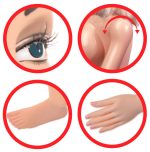 This sex doll looks sensually at her lover with her seductive 3D face and long brown hair. Her hands and feet are also fully formed and are waiting to be held and stroked, while her cheeky breasts with hard nipples are extremely eye-catching as well. Both pleasure canals are in a masturbator that can be removed so that it can be cleaned easily. The masturbator has a texture inside. The mouth is also ready for satisfying thrusts as well.