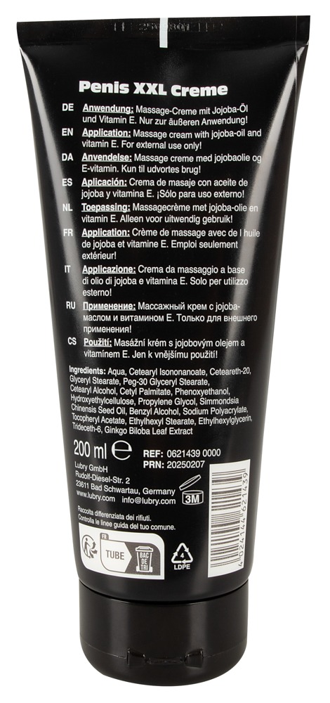 The vegan penis massage cream XXL contains jojoba oil, vitamin E and ginkgo extracts. It is also great for nourishment before or after sex. Just massage it into the penis (or let a partner do it) – the cream can be used as much as someone desires.
