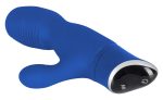Blue vibrator with 2 motors and stimulating grooves at clit tickler and tip. The 7 vibration levels are easily adjustable at the push of button. Total length approx. 18 cm, penetration depth 9.5 cm. Ø 3.1 to 4 cm. Material: silicone. (Please order batteries separately: 2 x Mignon/AA)