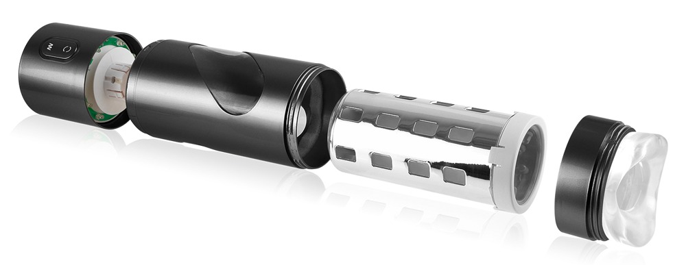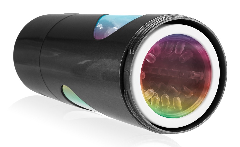 This masturbator massages the penis with 9 ecstatic rotation modes and a realistic mouth opening. The highlight is that it can change the direction of the spinning sleeve at the push of a button. This way it can produce mind-blowing massages, while the different layers of stimulating textures wrap around the penis and stimulate it. Each mode has its own light pattern in different colours. The sleeve can be removed for easy cleaning. Includes a USB cable.