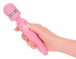 Pink, rechargeable vibrating wand with flexible massage head for targeted pleasure point or full-body massages. Extra strong motor for multi-speed vibration. With travel lock. Elegant detail: Sparkling Swarovski® stone as control button. Total length 20 cm, Ø 3.9 cm. Silicone, ABS. USB charging cable included.
