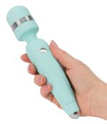 Pink, rechargeable vibrating wand with flexible massage head for targeted pleasure point or full-body massages. Extra strong motor for multi-speed vibration. With travel lock. Elegant detail: Sparkling Swarovski® stone as control button. Total length 20 cm, Ø 3.9 cm. Silicone, ABS. USB charging cable included.