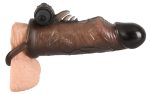 This amazing penis sleeve has a ball ring and vibro-bullet. The sleeve and the ring are flexible and the sleeve has bulging glans and striking veins. It also has 4 small, stimulating spikes and an opening, which has dots on, for the included vibro-bullet. The vibro-bullet has 10 different modes.