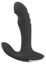This black butt plug with a perineum stimulator, a grooved shaft and a bulge underneath the slightly curved tip has 3 thrilling functions that can be controlled separately: it has 7 vibration modes in the perineum stimulator, 5 ‘knocking’ modes in the tip and 5 rotation modes at the bottom of the shaft.