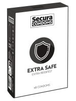 The transparent condoms Extra Safe from Secura for longer-lasting fun bed! The increased wall thickness reduces friction on the glans and kann thus increase stamina during intercourse. With a silicone-based coating for long-lasting lubrication. Vegan-friendly. Odourless and tasteless.