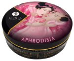 Luxurious Mini Massage Candle Aphrodisia from Shunga with a gentle subtle rose scent that spreads pleasantly through the room when the candle is lit. The candle wax melts into a delightfully warm nourishing massage oil that can be applied directly to the skin for a sensual and passionate partner massage. The 100% natural oil nourishes the skin and makes it silky-soft and supple for long-lasting massage pleasure.
