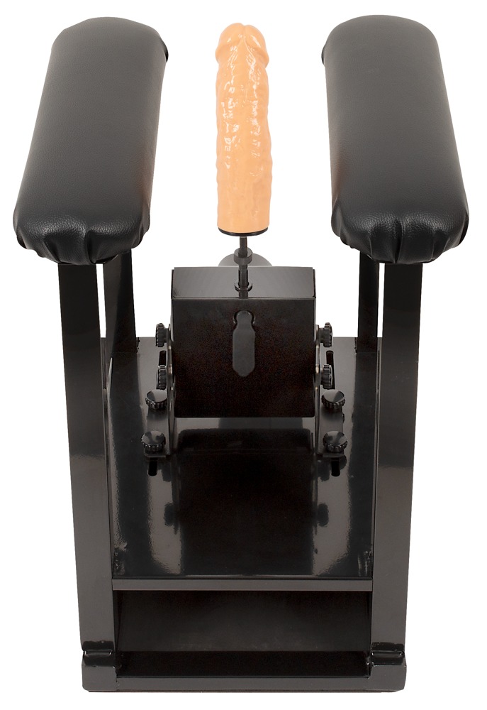 Mains-powered sex machine Sit-On Climaxer from The Banger including a realistic dildo. The powerful sex machine is integrated into the sturdy, stable seat frame. It can be individually adjusted in position and angle for the user(s) to enjoy hands-free pleasure. The two comfortably padded seats ensure maximum comfort during every ride.