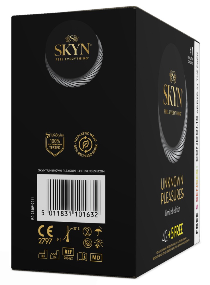 The condom mix Unknown Pleasures 42+5free from SKYN has 47 different condoms in total: