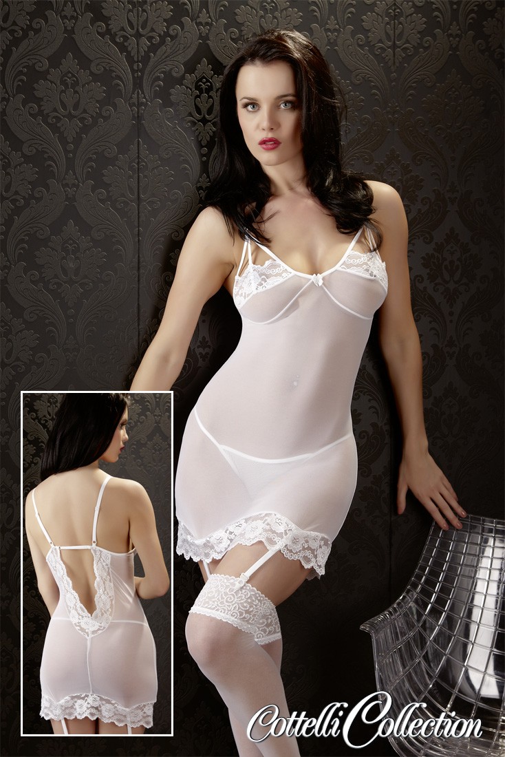 Home Abbigliamento Donna Baby Doll e Chemise SOTTOVESTE BIANCA IN TULLE E PIZZO CON REGGICALZE E PERIZOMA
