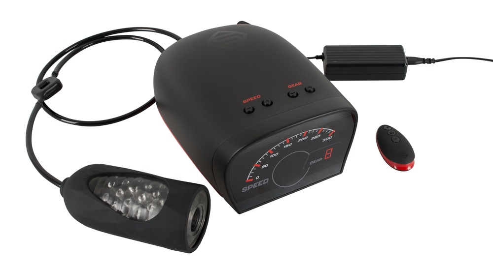 Mains-powered masturbator in a sporty and elegant design with LED speedometer display. The new model is 100% more powerful than its predecessor and the motor, with a power of 60 W, now offers up to 200 suction impulses per minute. The Suck-O-Mat 2.0 also stands out because of its extremely realistic and one-of-a-kind blowjob simulation. It can be enjoyed hands-free and – similar to a car – in 8 + 1 different gears: