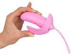 RC Panty Vibrator from Sweet Smile in a perfect anatomical shape with a vibro-penis and stimulating dots for the clitoris in a soft silicone shell. 7 vibration modes can be controlled easily at the push of a button with the practical remote control – also by a partner. The whisper-quiet but powerful vibrations provide discreet stimulation anywhere and anytime without anybody noticing it! The vibro-bullet with a stretchy strap can be removed from the vibro-penis and can then also be used on its own.