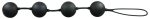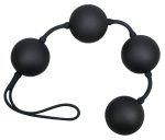 Black love ball quartet with vibrating inner balls and an elastic retraction loop. The balls are perfect for pelvic floor training. The weighted balls on the inside rotate and have a swinging effect with every move that lead to strong muscle contractions. With a weight of 108 g these balls are perfect for trained experts.