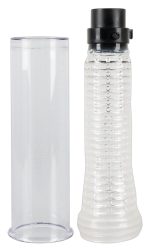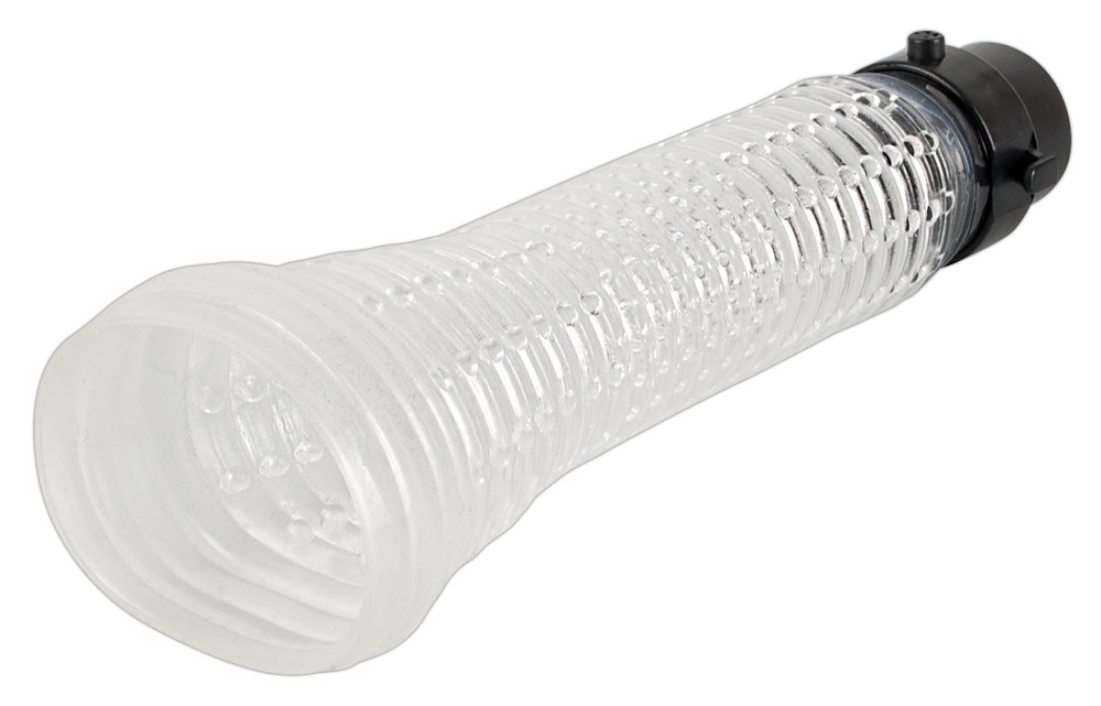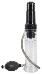 Depending on how the pump ball is attached to the tube (49 cm long) on the cylinder, air can either be sucked out of the penis pump (in order to create an effective vacuum for penis/potency training) or can flow inside for an amazing blow job suction effect. For additional stimulation, you can also turn on the multi-speed glans vibration that goes from gentle to powerful. Complete length 33.7 cm. Transparent cylinder 17.2 cm deep, outer Ø 6 cm, with a removable dotted sleeve inside.