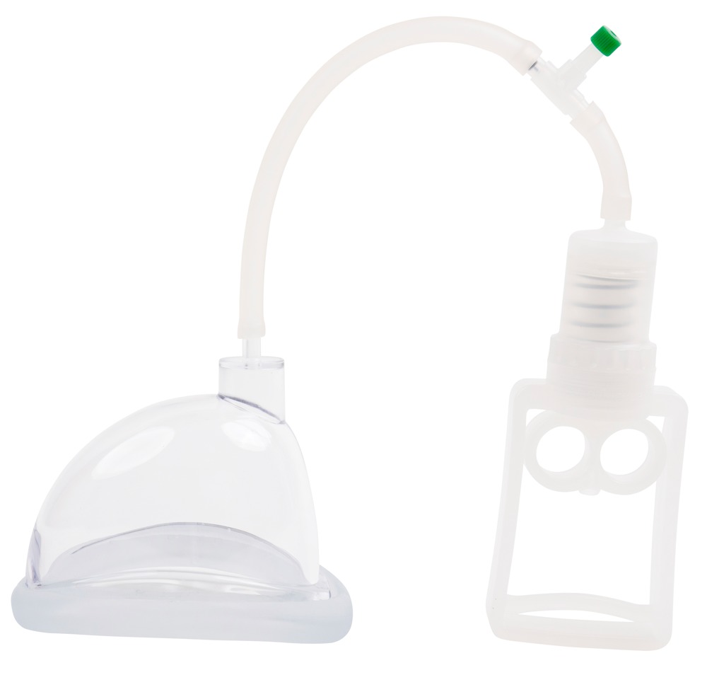 Comprehensive set with 1 firm, oval suction cup and 1 round suction cup for the intimate area. Made out of flexible material. Includes a piston pump with hose and pressure regulator that provides an intense suction sensation with a pressure of up to 600 Mbar. Compatible with the FRÖHLE insertion tube to further increase the pleasurable sensation. 2 removable attachment sleeves are included.