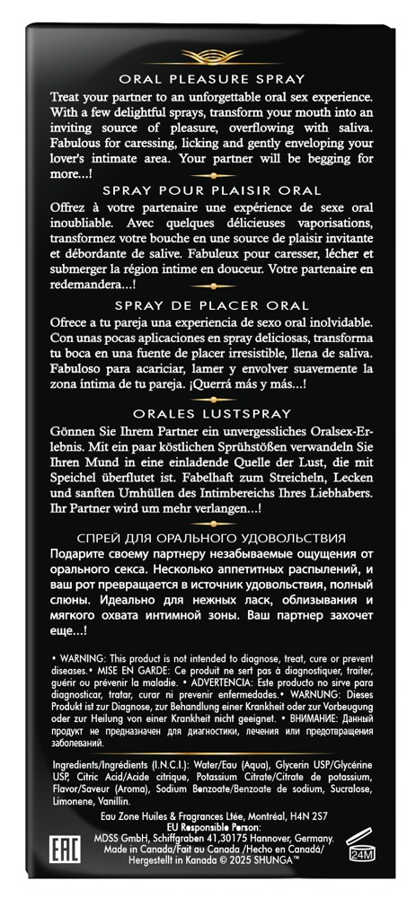 The Waves of Pleasure Watermelon mouth spray from Shunga transforms the mouth and throat into a fruity source of pleasure for unforgettable oral sex. The fresh summer watermelon flavour is great for playful tongue action, deep kissing and intimate nibbling. Simply spray into the mouth/throat before oral sex.