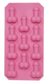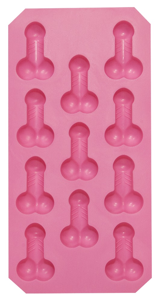 Cold stiffness for hot parties! Pink ice cube mould for 11 penis-shaped ice cubes with testicles. Soft and elastic for an easy removal of the ice cubes. 20 x 11 cm. Material: TPR.